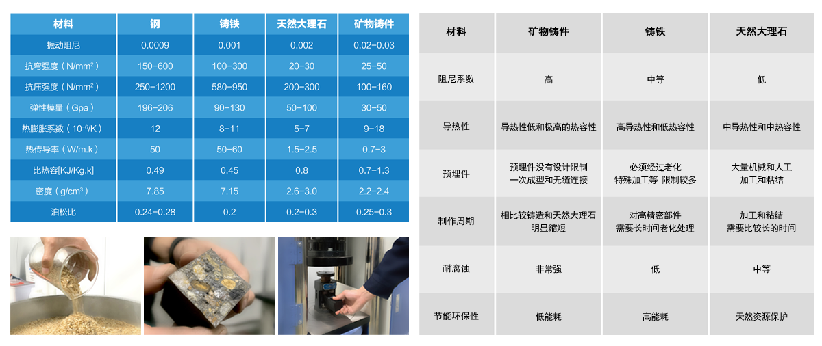 矿物铸件对温度的变化不敏感,导热性比金属要低很多,有效地把机床因受热引起的几何尺寸误差控制在很小的范围,从而保证了机床的精度。